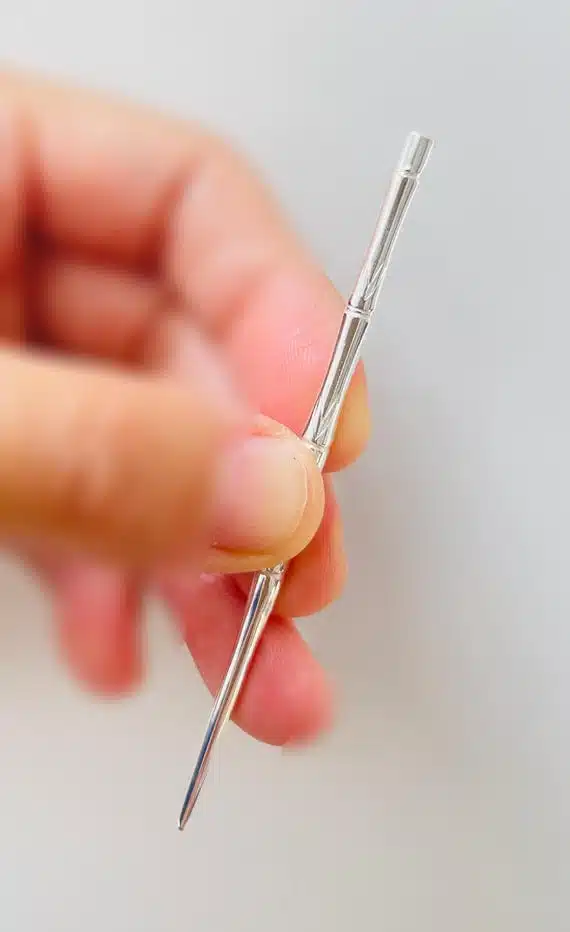 A blunt-tipped metal rod used to contact acupuncture points without piercing. Doc applies precise pressure and subtle movements to regulate Qi with extraordinary effectiveness.